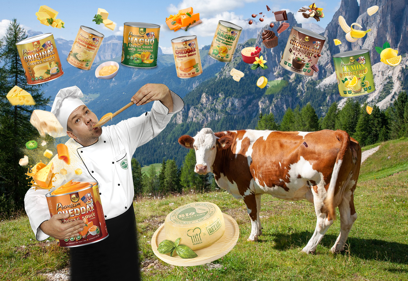 Продукти BIO Factor Group виробництва США – відмінне рішення для всіх, хто хоче розширити свій асортимент сирних соусів, десертів, приправ та топінгів (посипок) для випічки. Наші клієнти – виробники соусів та чіпсів, мережі ресторанів, швидкого харчування, роздрібної торгівлі та оптові постачальники HoReCa – обирають продукти BIO Factor Group за виняткову якість. BIO Factor Group орієнтована на здорове харчування. Продукти сертифіковані за стандартами Halal і Kosher, не містять консервантів, але можуть зберігатися без особливих умов тривалий час, що є конкурентною перевагою в порівнянні з іншими брендами. Сирні соуси та приправи – важливі компоненти в кулінарії, здатні значно покращити звичні уподобання або надати їм оригінальних відтінків. Соуси та приправи відмінно поєднуються з м’ясними, рибними та овочевими стравами, з морепродуктами, використовуються в приготуванні бургерів і піци, як заправка ідеально підходять до пасти, салатів, супів, подаються до стейків, хот-дог, фрикадельок, ковбас, надають пікантний смак картоплі фрі, чіпсам, такос та начос